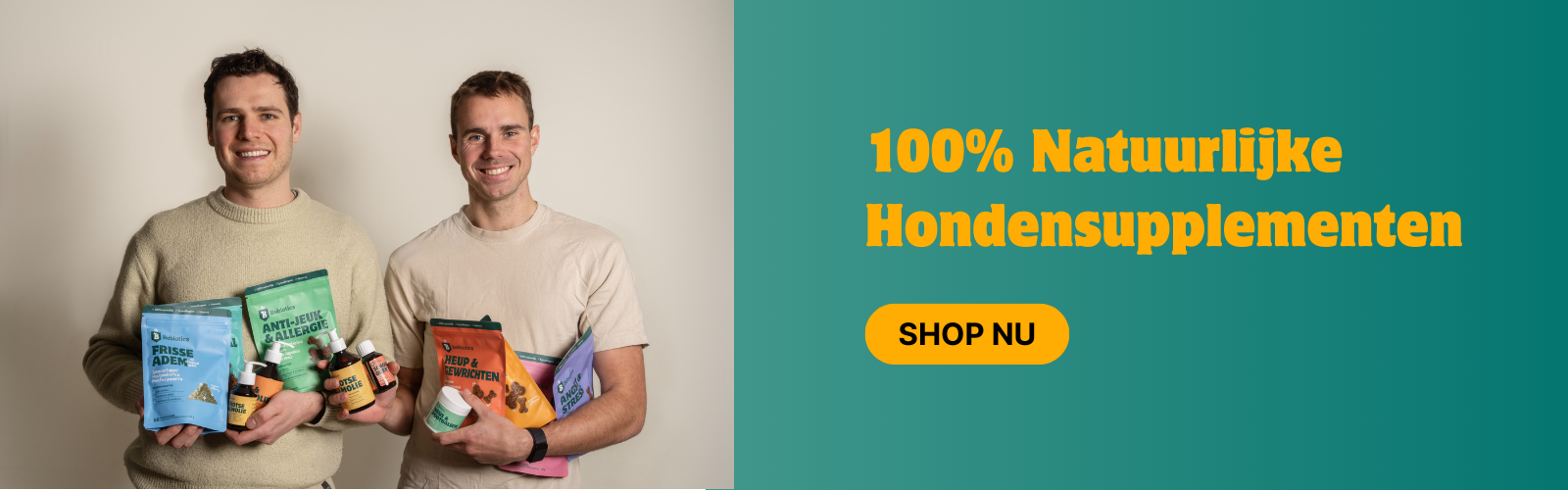 Bobiotics is meer dan een supplementenmerk. Het is een missie van twee hondenliefhebbers die wetenschap en natuur combineren. Gauthier en Lowie geloven dat elke hond premium zorg verdient – veilig, effectief en eenvoudig.